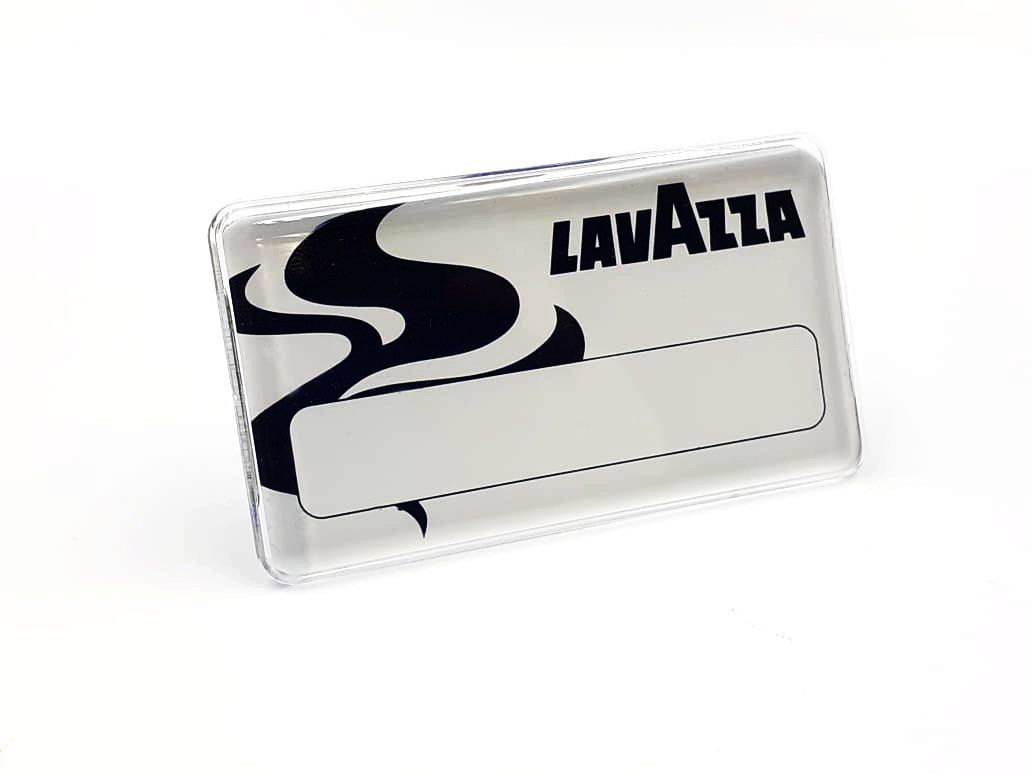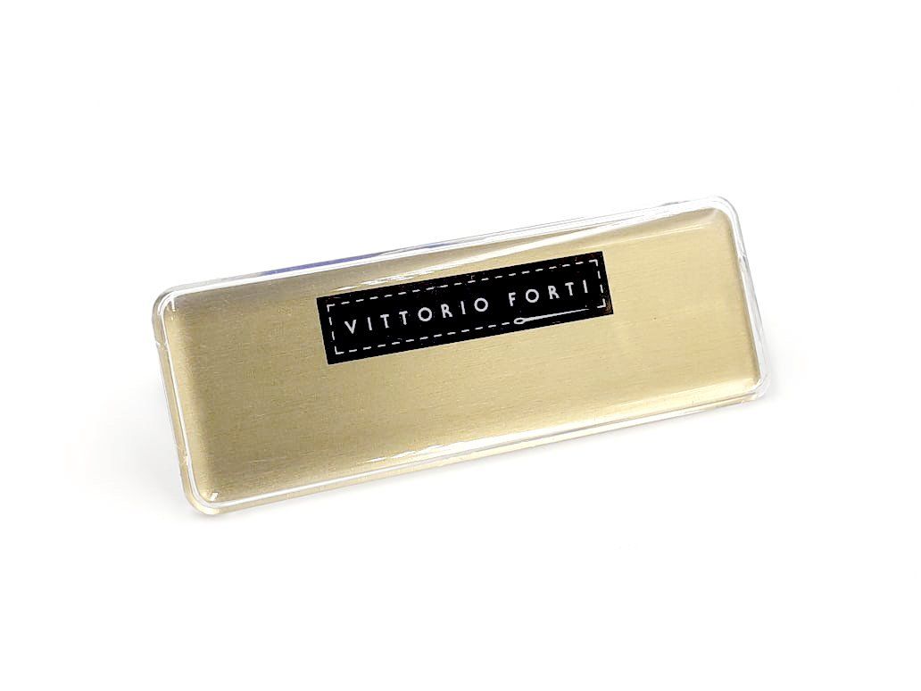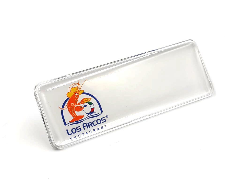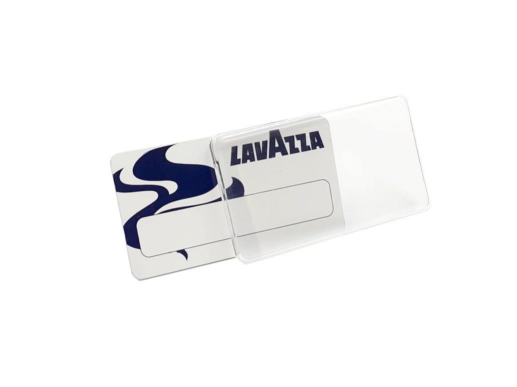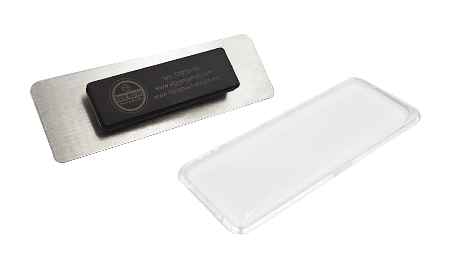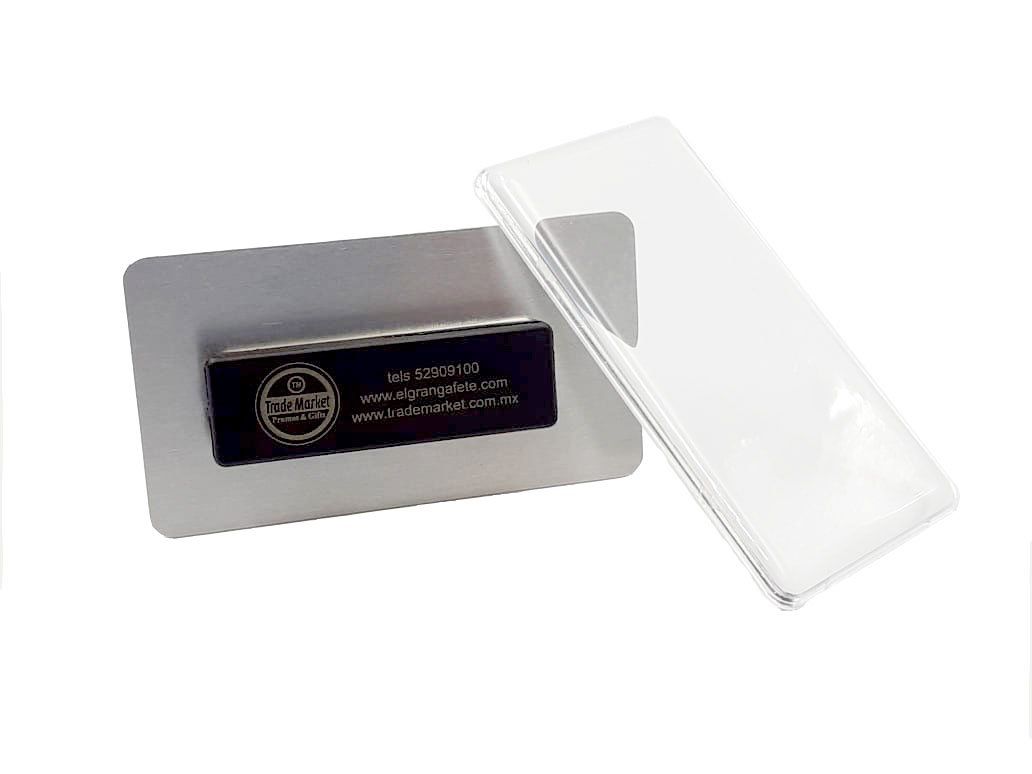 Inserto transparente con el nombre del colaborador y su puesto o área