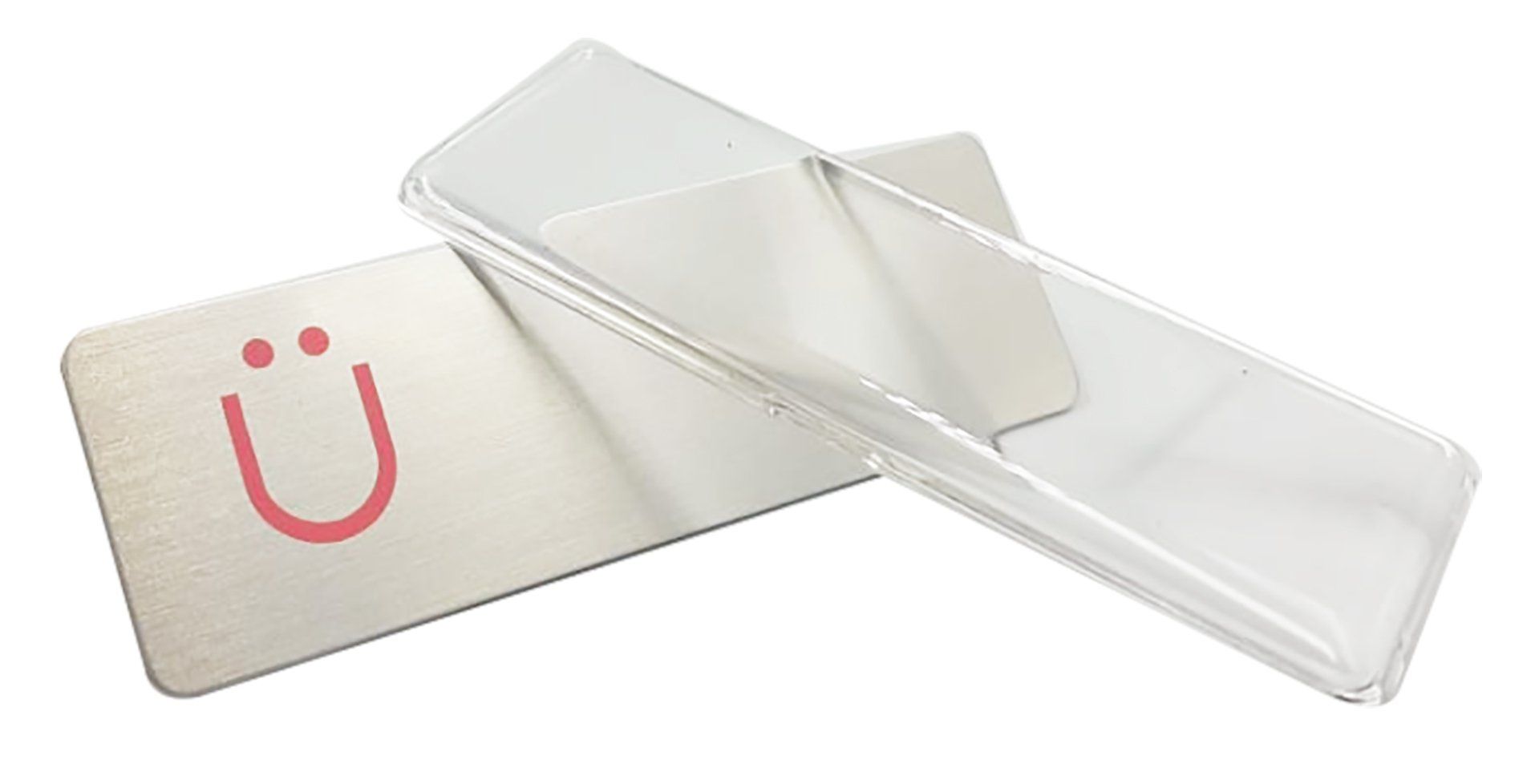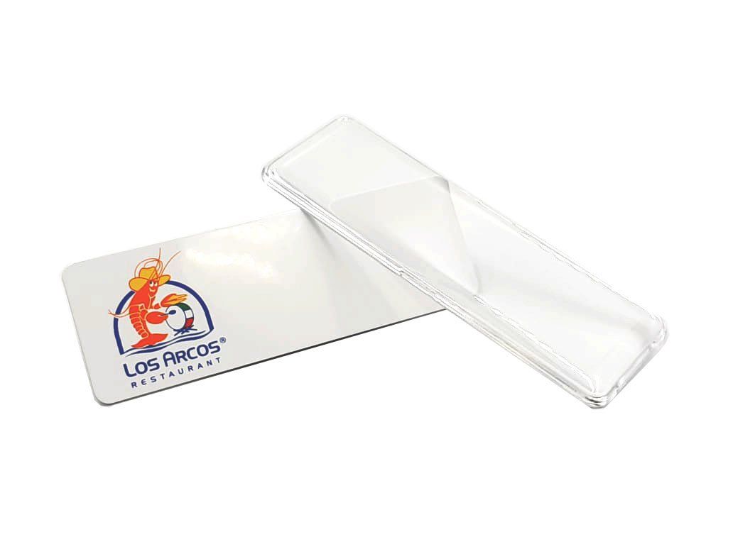 Finalmente, con un simple movimiento se coloca el domo protector de plástico duro que protege al gafete, dándole resistencia y una imagen sumamente profesional y elegante.